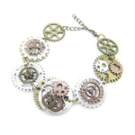 The bracelet that has the purest industrial and therefore steampunk style, it will not leave those around you indifferent. The chain intertwined with gears and cogs will suit any woman who dares to combine retro-futuristic jewelry and clothing.