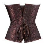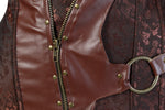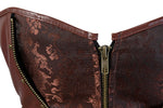 Ce corset en brocart brun pour femme comprend de nombreuses baleines dissimulées sous un tissu en simili cuir. Ce qui lui assure une bonne tenue. Il est ajustable au dos par un lacet sur toute sa hauteur pour permettre de le cintrer à votre convenance.